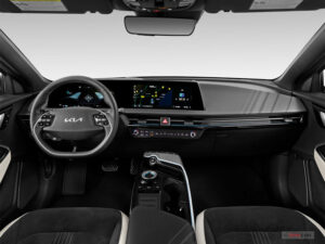 - The Kia EV6 Interior impresses with a wide, curved digital display that integrates both the driver’s instrument cluster and infotainment screen.