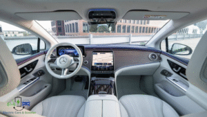 - Inside, the cabin combines premium upholstery with sustainable materials — showcasing Mercedes-Benz’s commitment to eco-friendly luxury.